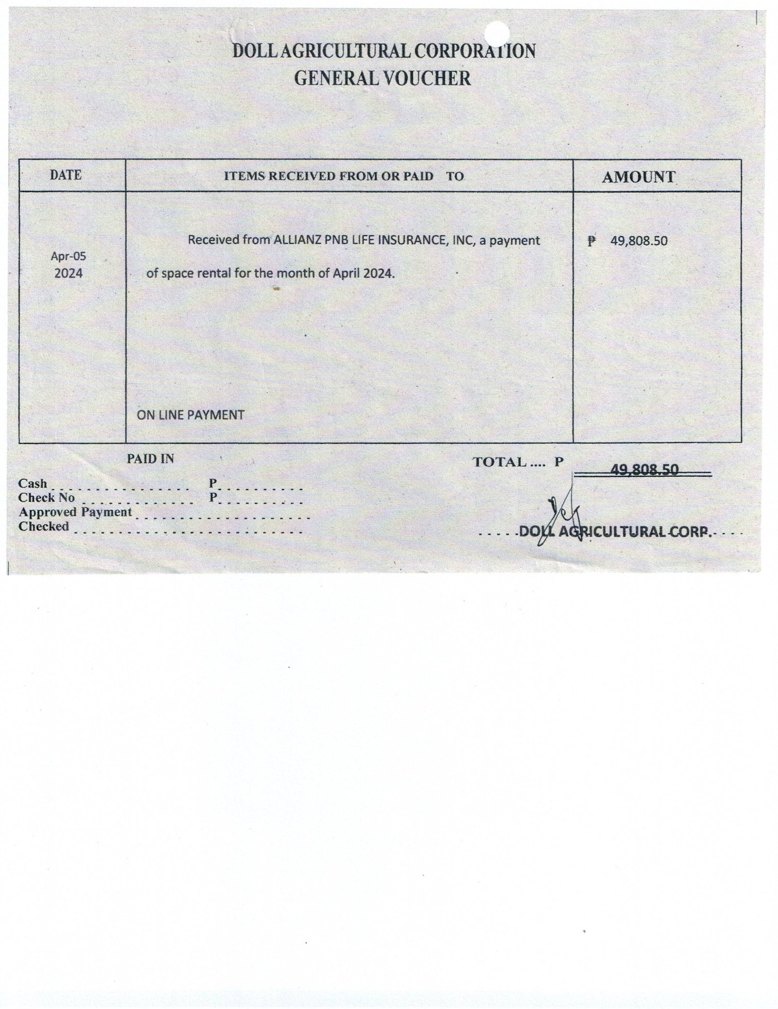 Mode of Payment: Not specified