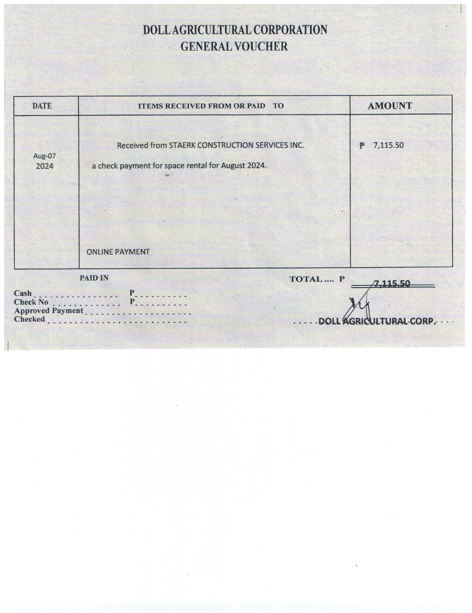 Mode of Payment: Not specified